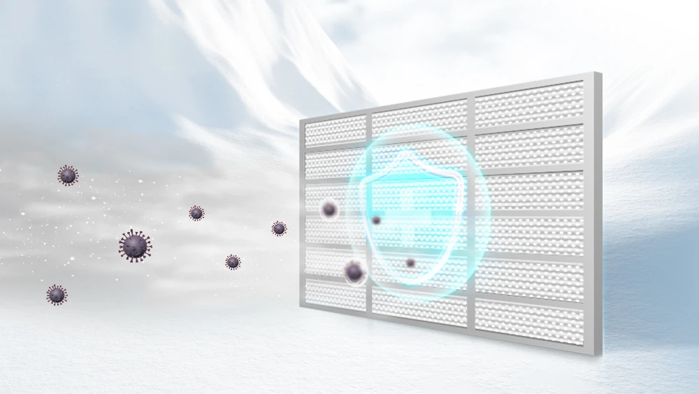 Với tấm lọc HEPA chuẩn H13, dòng điều hòa H-series loại bỏ 99,95% các loại bụi siêu vi có kích thước tới 0.3μm, đem lại không khí trong lành cho căn phòng của bạn.