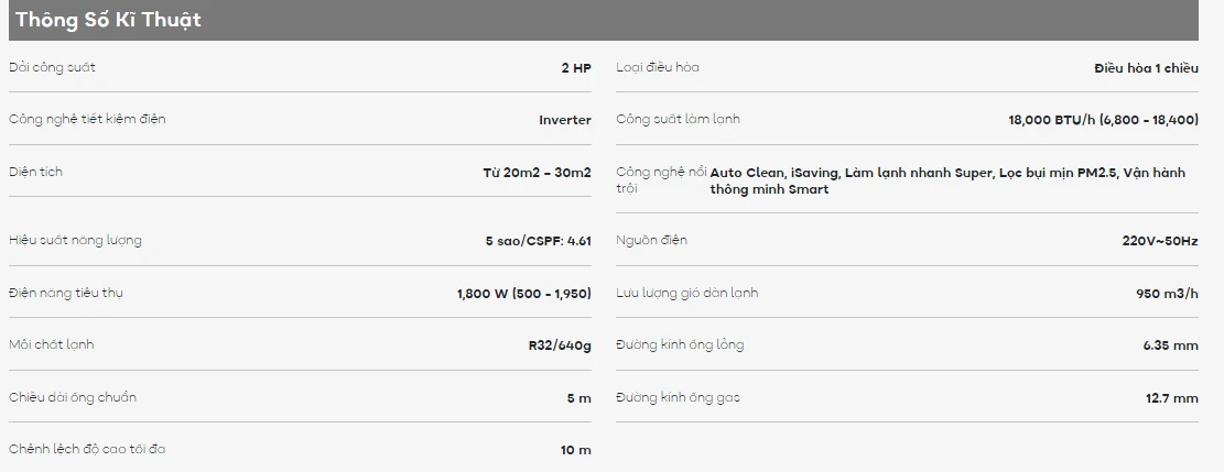 Điều hòa Casper treo tường 18000BTU 1 chiều Inverter HC-18IA32