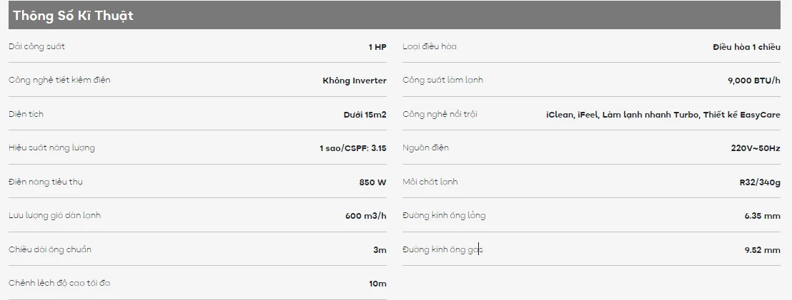 Điều hòa Casper sử dụng môi chất lạnh R32 - môi chất lạnh thế hệ mới mang lại công suất làm mát cao hơn và giảm chi phí năng lượng.