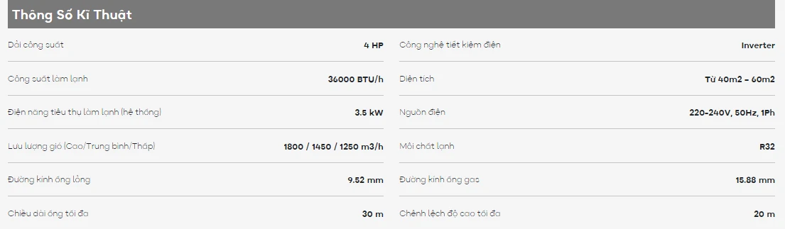 Điều hòa âm trần Casper 36000BTU 1 chiều Inverter CC-36IS35