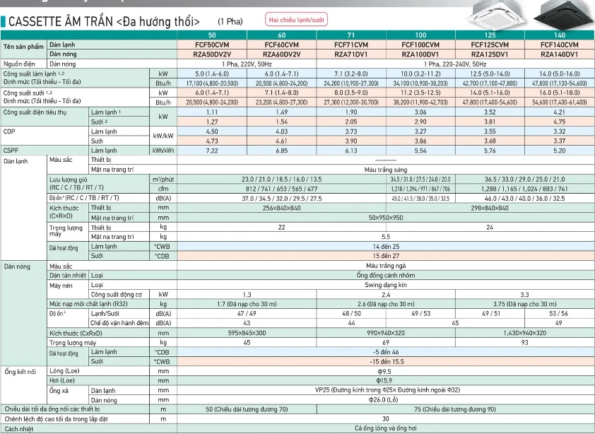Điều hòa Daikin âm trần 18000BTU 2 chiều (1 PHA) FCF50CVM/RZA50DV2V