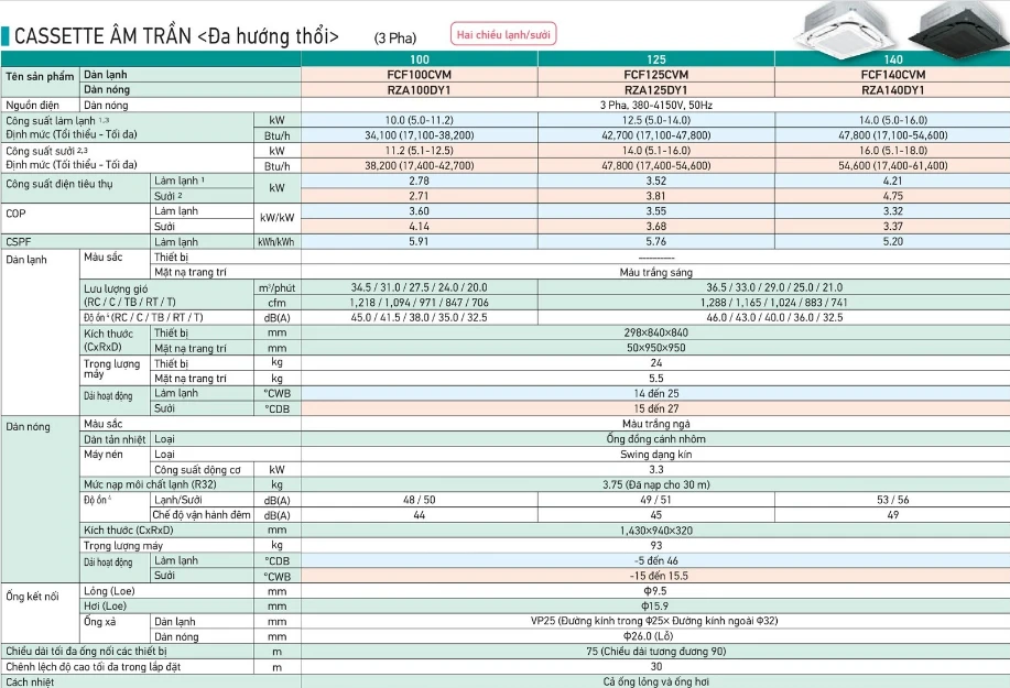 Điều hòa Daikin âm trần 48000BTU 2 chiều (3 PHA) FCF140CVM/RZA140DY1
