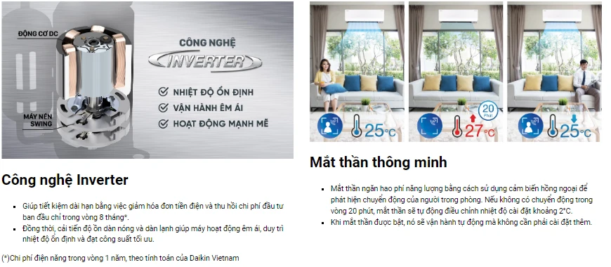Vận hành ổn định và tiết kiệm điện nhờ công nghệ EcoInverter.