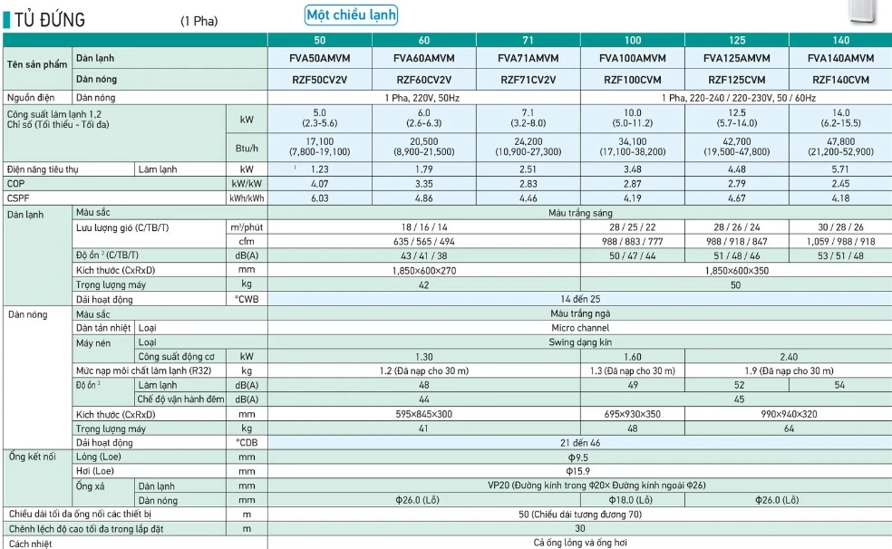 Điều hòa Daikin tủ đứng 18000BTU 1 chiều Inverter (1 PHA) FVA50AMVM