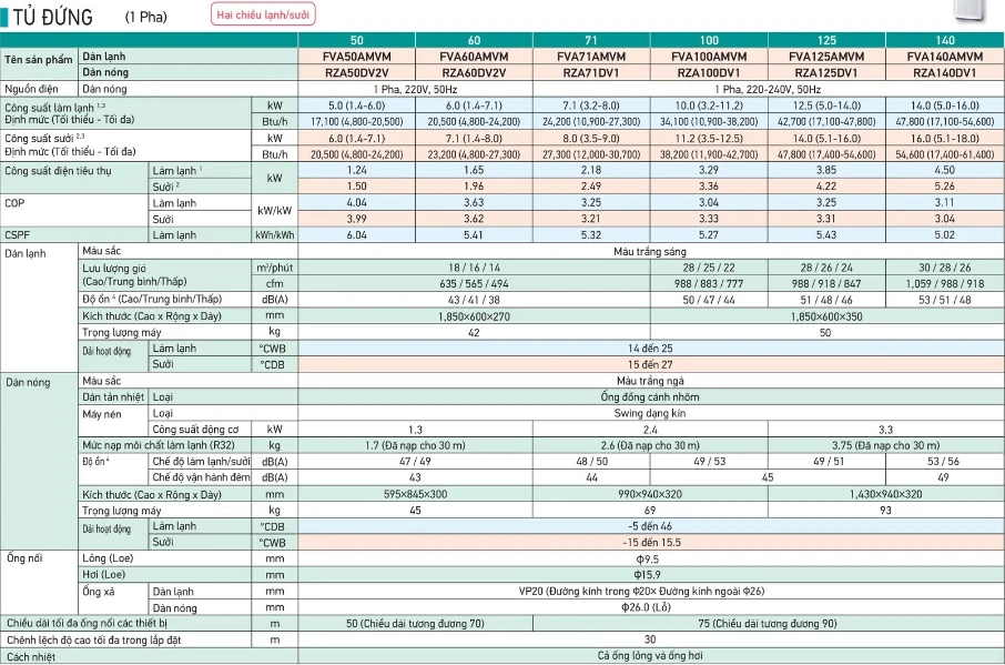 Điều hòa Daikin tủ đứng 48000BTU 2 chiều Inverter (1 PHA) FVA140AMVM/RZA140DV1