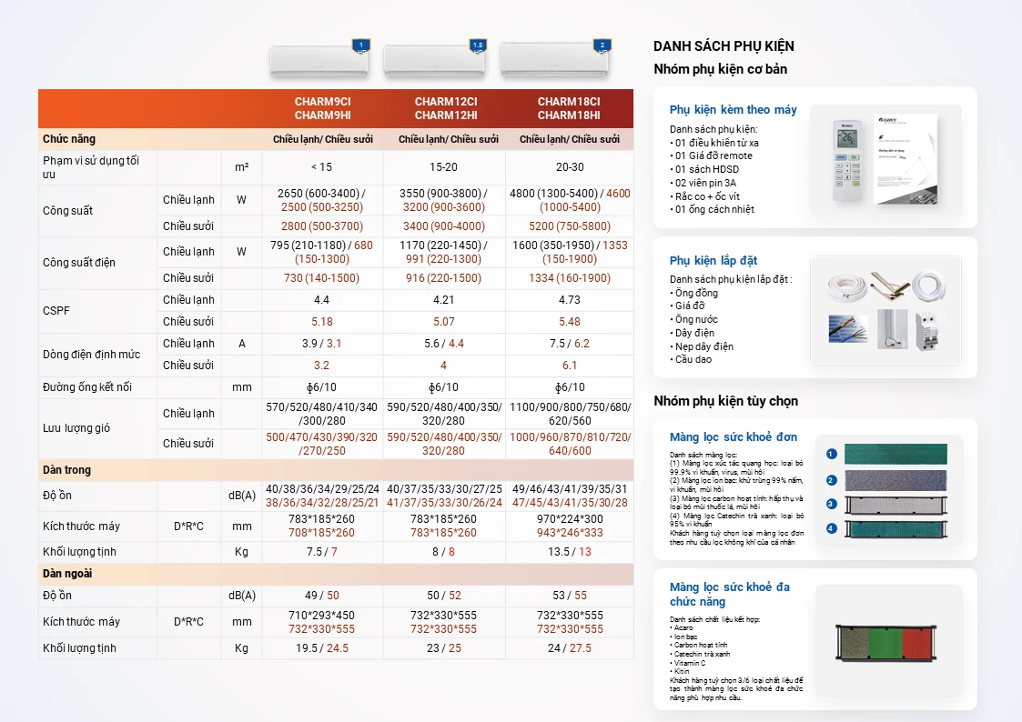 Khi ở chế độ chờ, Charm chỉ tiêu hao 1W điện năng, cực kì tiết kiệm so với các dòng điều hoà thông thường sử dụng đến 15W, đảm bảo tiết kiệm tối đa lượng điện tiêu thụ cho người dùng.