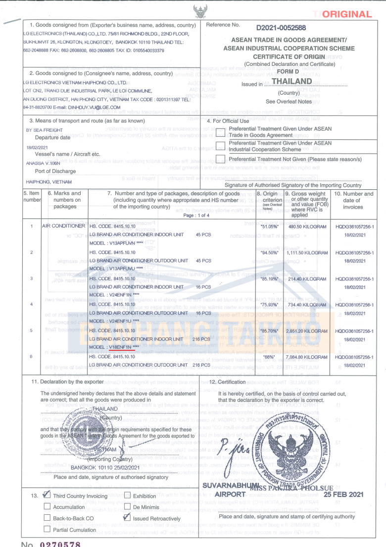 Chứng nhận CO&C/Q Điều hòa LG 18000BTU 1 chiều inverter IEC18M2