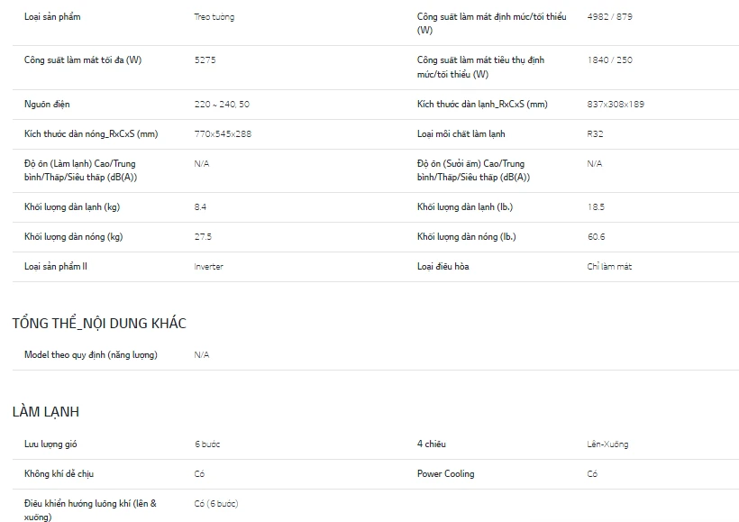 Điều hòa LG treo tường 18000BTU 1 chiều Inverter V18WIN1