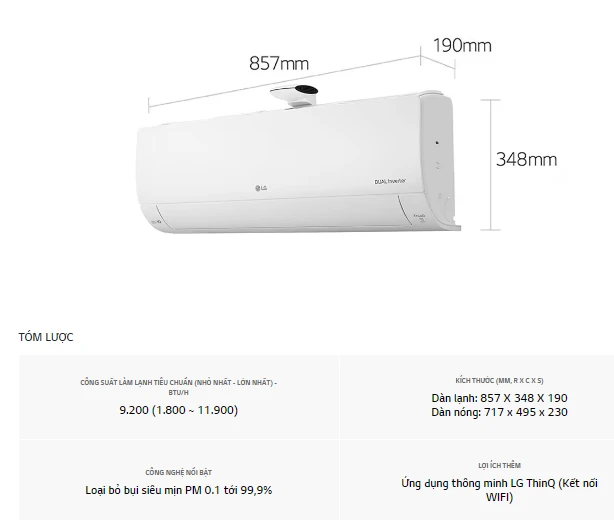 Điều hòa LG treo tường 9000BTU 1 chiều Inverter V10APFP