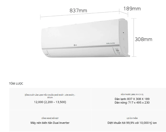Điều hòa LG treo tường Ion Plasma 12000BTU 1 chiều Inverter V13APH2