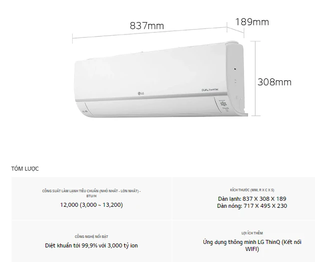 Điều hòa LG treo tường Ion Plasma 12000BTU 2 chiều Inverter B13API