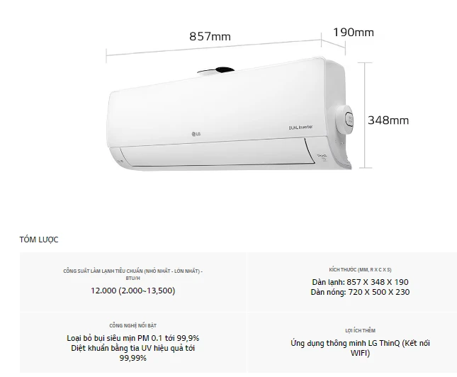 Điều hòa LG treo tường UVNano 12000BTU 1 chiều Inverter V13APFUV