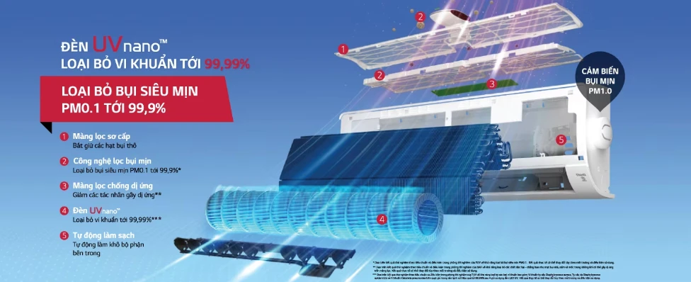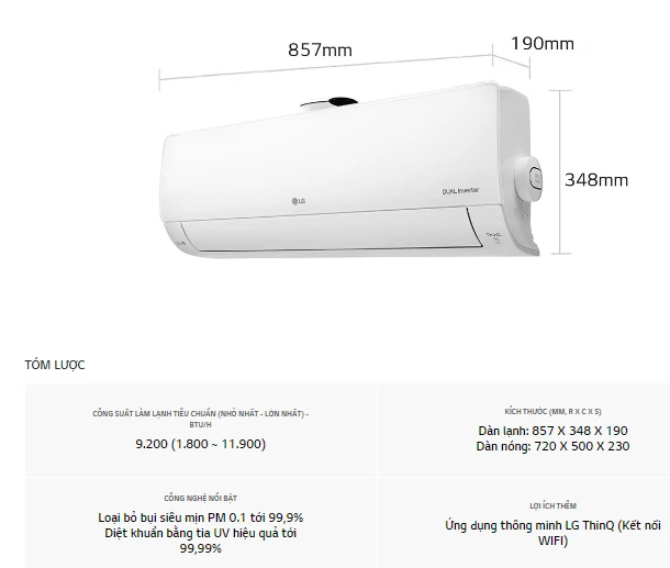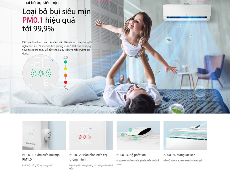 Điều hòa LG treo tường UVNano 9000BTU 1 chiều Inverter V10APFUV