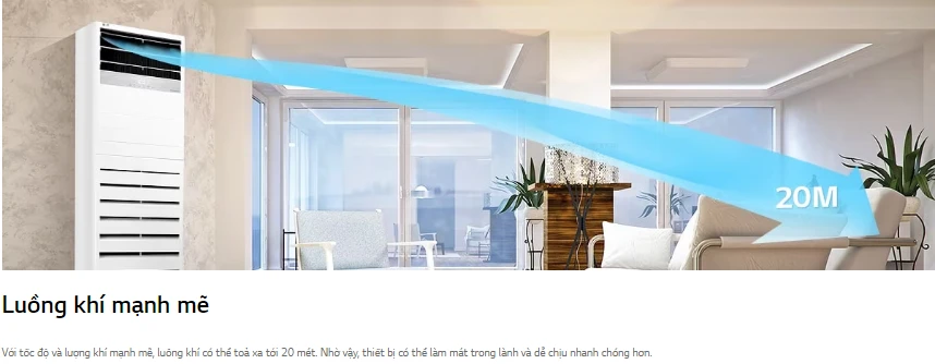 Điều hòa Tủ đứng LG sở hữu nhiều tính năng thông minh và thiết kế đơn giản, sang trọng phù hợp lắp đặt trong không gian có yêu cầu cao về trang trí nội thất.