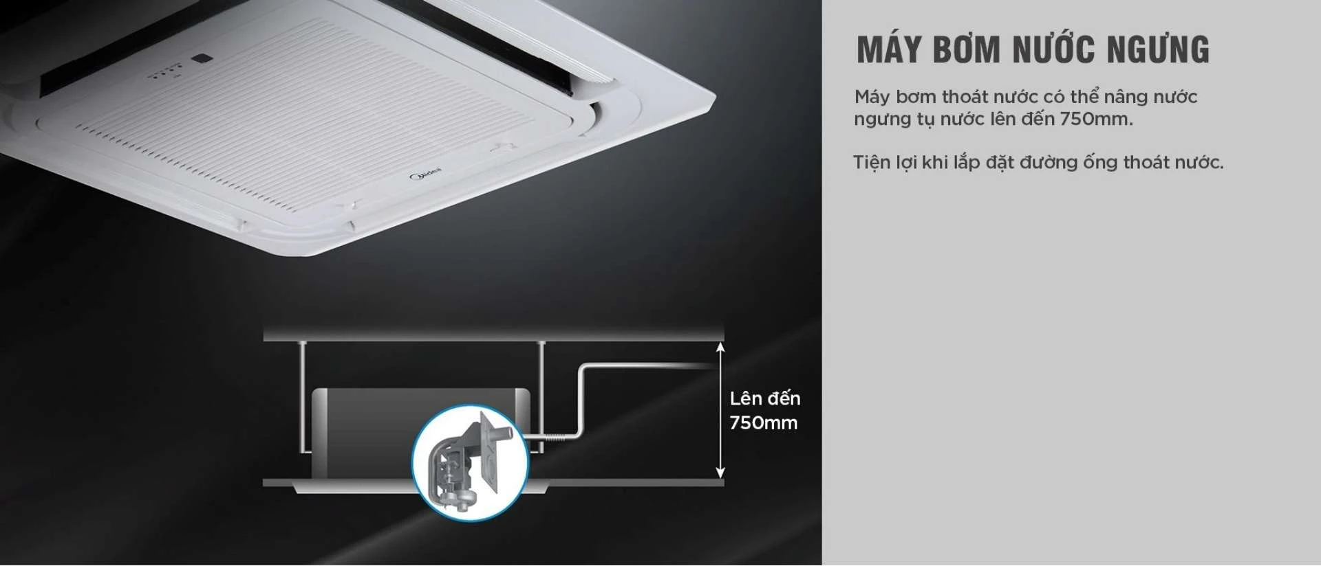 Điều hòa âm trần Cassette Midea với thiết kế nhỏ gọn, trang nhã phù hợp với mọi không gian, đặc biệt là sự lựa chọn hàng đầu cho các công trình khách sạn, nhà nghỉ, văn phòng, chung cư và nhà ở. Điều hòa làm lạnh nhanh và hoạt động êm ái