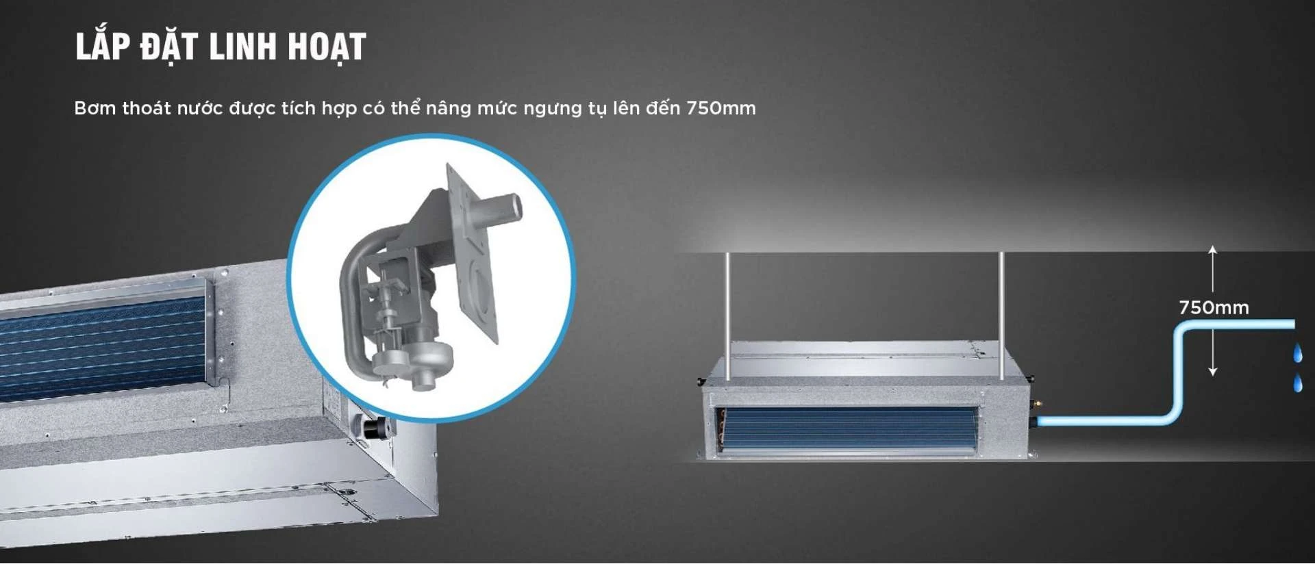 ·         Trang bị bơm thoát nước tiêu chuẩn lên đến 750mm