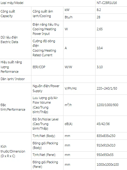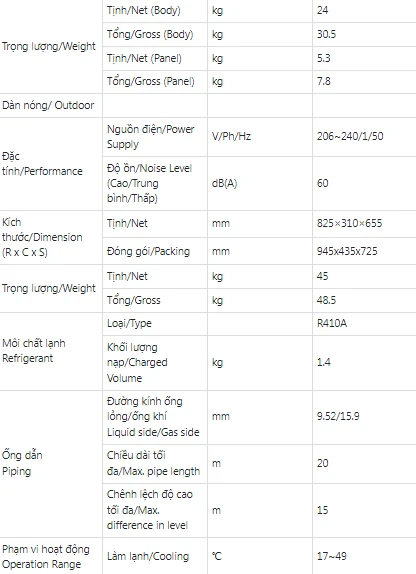 Thiết kế thon gọn với bề dày 250mm và được trang bị bơm thoát nước ngưng tụ áp suất đẩy lên tới 750mm. Dễ dàng lắp đặt đường ống trong mọi điều kiện không gian, đặc biệt thích hợp cho các phòng có trần treo thấp.