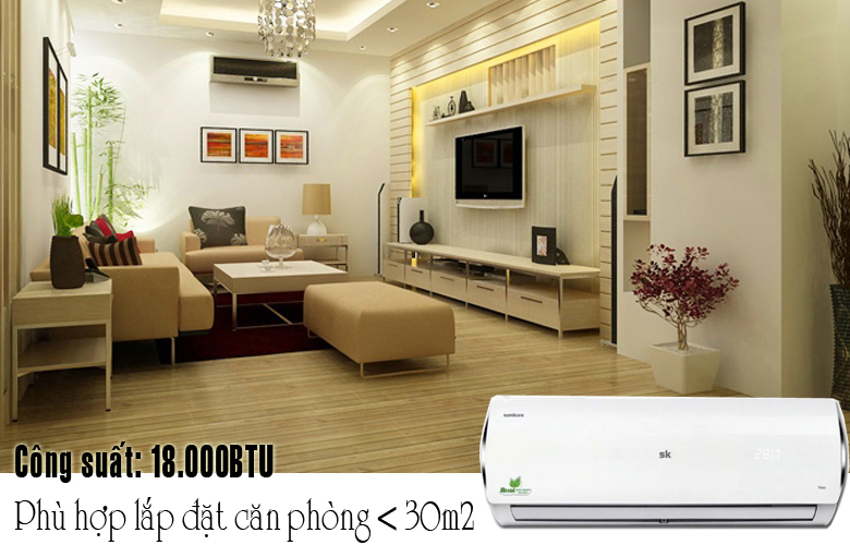Với công suất 18000BTU, Sumikura APS/APO-180 phù hợp lắp đặt cho căn phòng có diện tích 20-30m2: Phòng ngủ, phòng làm việc…