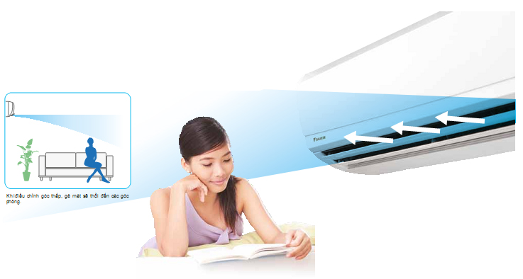 Điều hòa Sumikura với khả năng làm lạnh nhanh chóng bởi cánh hướng dòng với góc rộng được uốn cong giúp tăng hiệu quả thổi gió rộng khắp phòng cho dù dàn lạnh có thể đặt bất cứ nơi đâu.